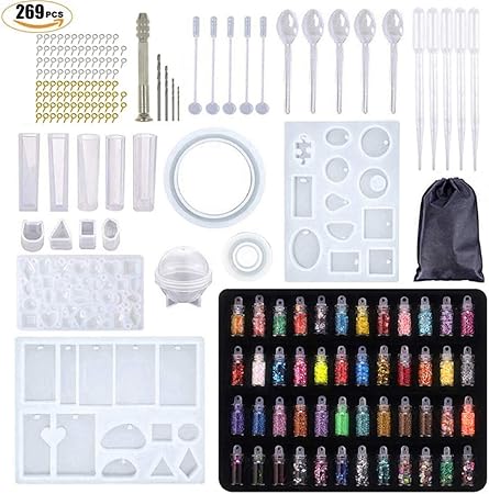 Kit Per Creazioni Gioielli Resina Epossidica Bicomponente Con Stampi In Silicone Con Tazze E Barrette Con Pigmenti Coloranti E Brillantini Fiori Essiccati E Di Fiori Di Corallo Con Pinzette Amazon It Fai