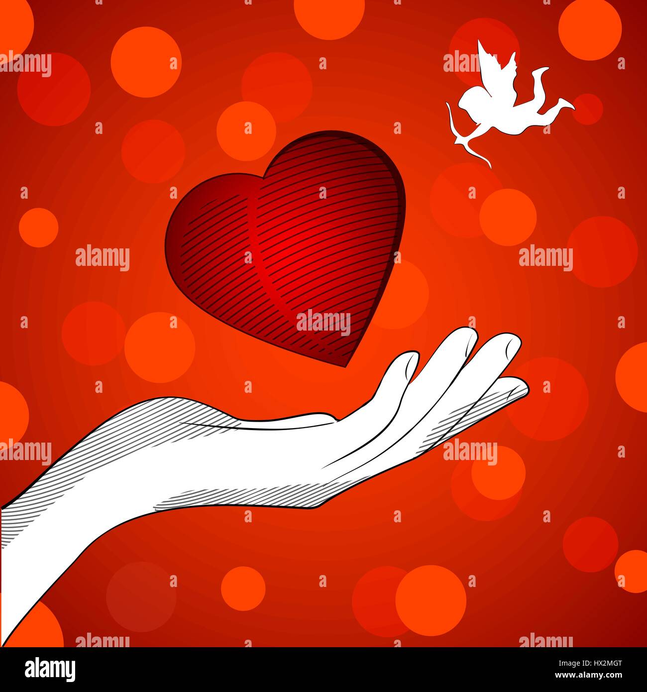 Cuore Innamorato Schizzo Mano Che Regge Un Cuore Cupido In Background Immagine E Vettoriale Alamy