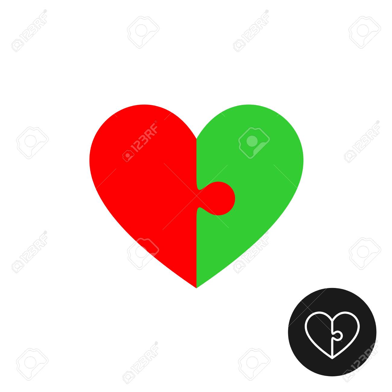 Immagini Stock Puzzle Di Cuore Con Due Meta Di Colore Image 68879200