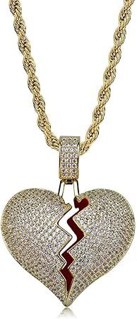 Anlw Coppia Collana Cuore Spezzato Cuori Spezzati Cuore Micro Intarsiato Zircone Pendente Uomini E Donne Hip Hop Collana Smallbucklegold Amazon It Sport E Tempo Libero