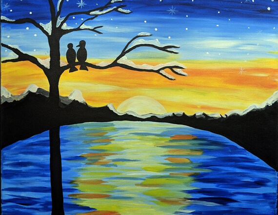 Uccelli D Amore Al Tramonto Dal Lago Dipinto A Etsy