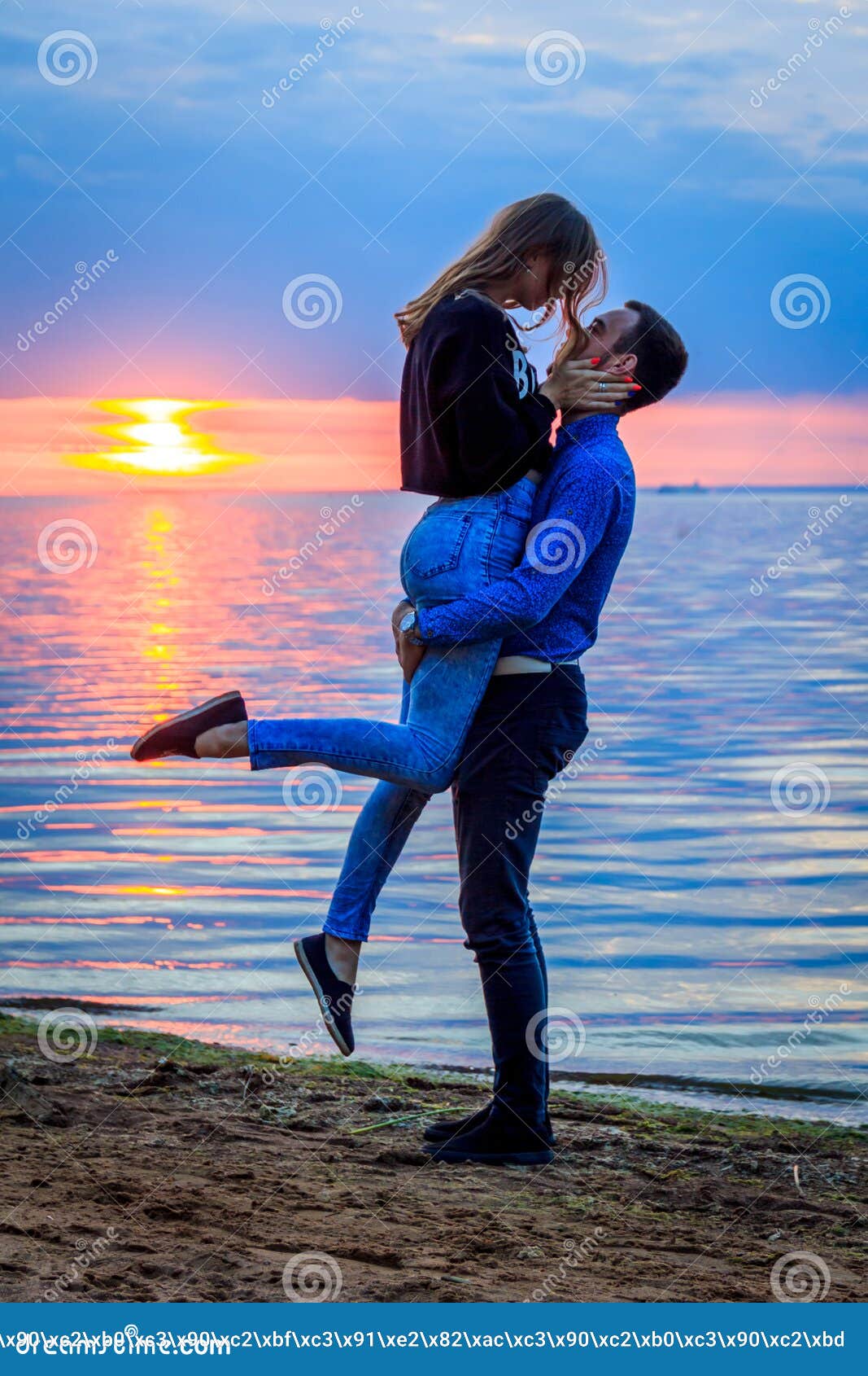 Coppia Giovane In Amore Al Tramonto In Riva Al Mare Foto Stock Alamy