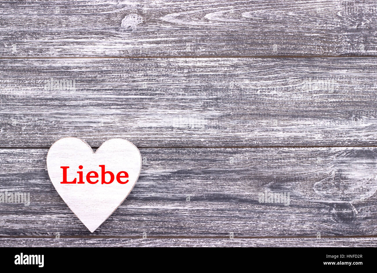 Decorativi In Legno Bianco Cuore Sul Grigio Sfondo Di Legno Con Scritte Di Amore In Tedesco Valentines Day Card Nozze Foto Stock Alamy