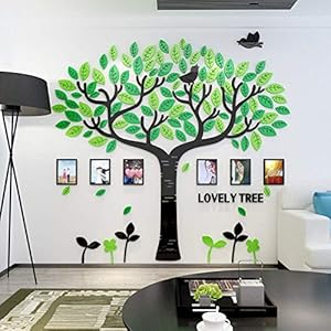 Topmail 3d Albero Con Verde Foglie Adesivi Murali Da Parete Muro Wall Stickers In Acrilico Impermeabile Con Uccelli 7 Inch 6 Cornici Albero Murale