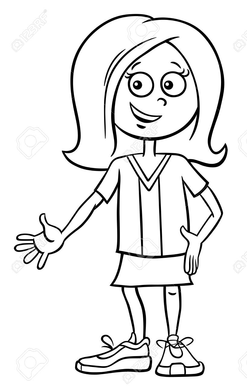 Bianco E Nero Cartoon Illustrazione Della Scuola Elementare Di Eta O Ragazza Adolescente Libro Da Colorare Immagine E Vettoriale Alamy
