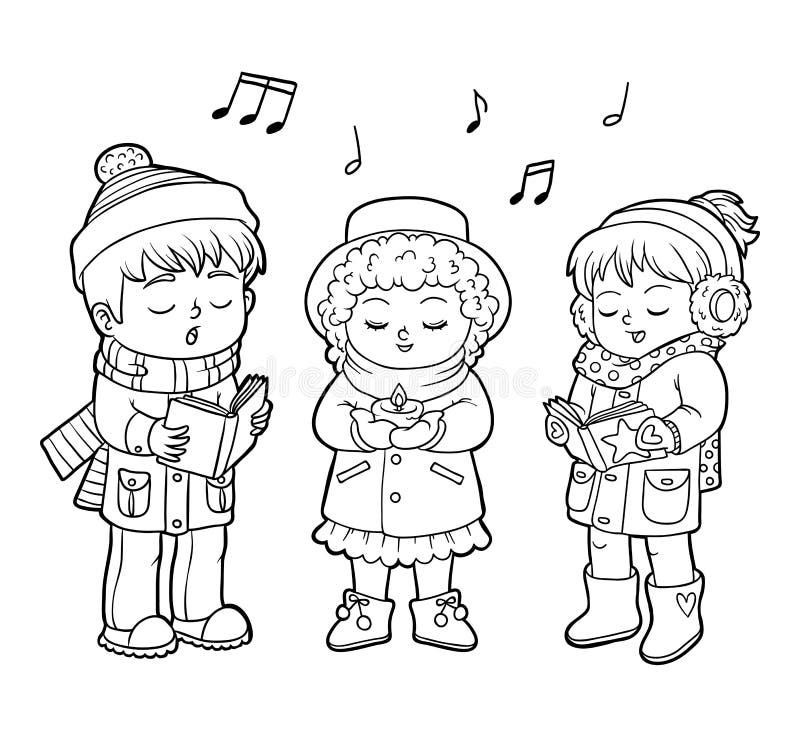 Libro Da Colorare Ragazzo Che Canta Una Canzone Di Natale Illustrazione Vettoriale Illustrazione Di Note Allegro 99058969