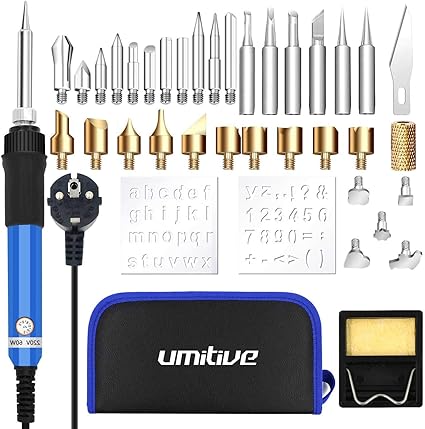 Umitive 37pcs Kit Pirografia Legno 60w Temperatura Regolabile Con 33 Incisione Legno A Caldo Punte Elettrico Attrezzi Incisione Professionale Lavori Su Cuoio Legno Amazon It Fai Da Te