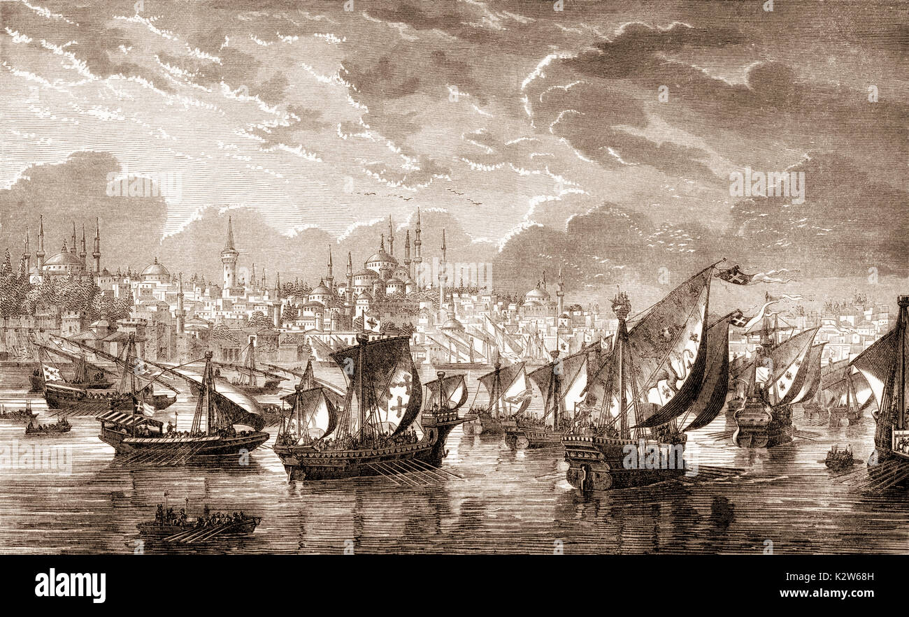 La Flotta Dei Crociati Di Fronte A Costantinopoli Durante La Quarta Crociata Nel 1203 Riva Del Fiume Turchia Foto Stock Alamy
