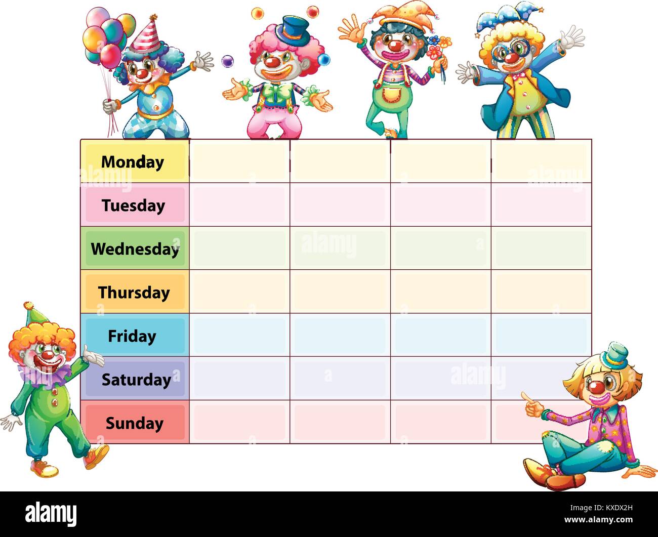 Tabella Dei Sette Giorni Della Settimana Con Happy Clown Illustrazione Immagine E Vettoriale Alamy