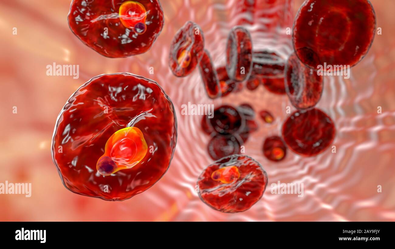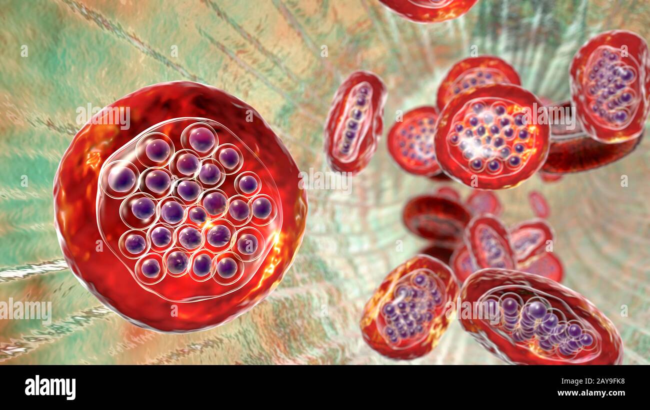 Plasmodium Falciparum All Interno Dei Globuli Rossi Illustrazione Foto Stock Alamy