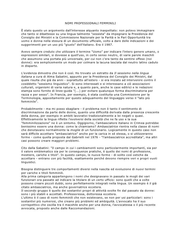 Nomi Professionali Femminili