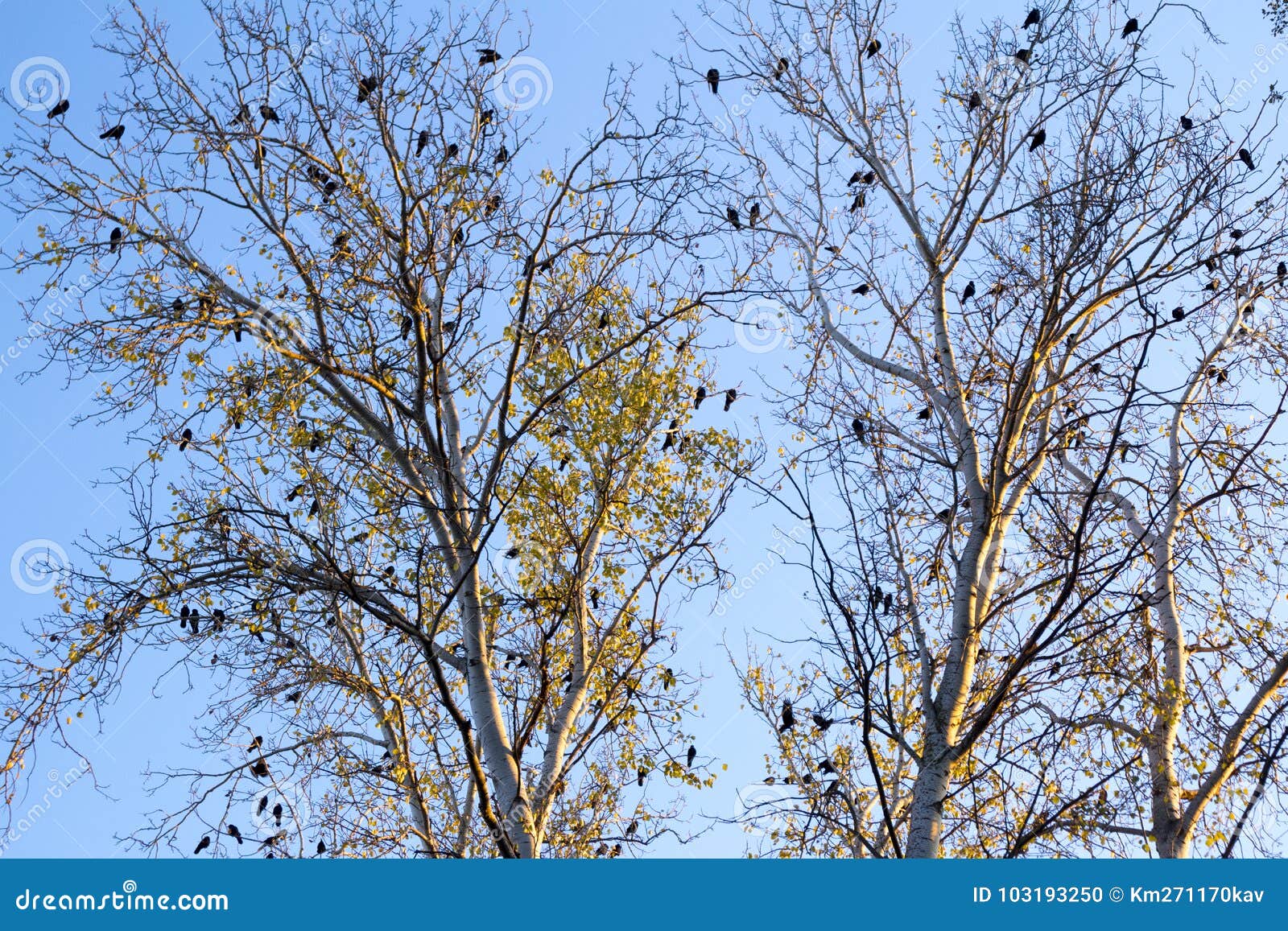Corvi Neri Sui Rami Dei Pioppi Bianchi Fotografia Stock Immagine Di Corvi Bianco 103193250
