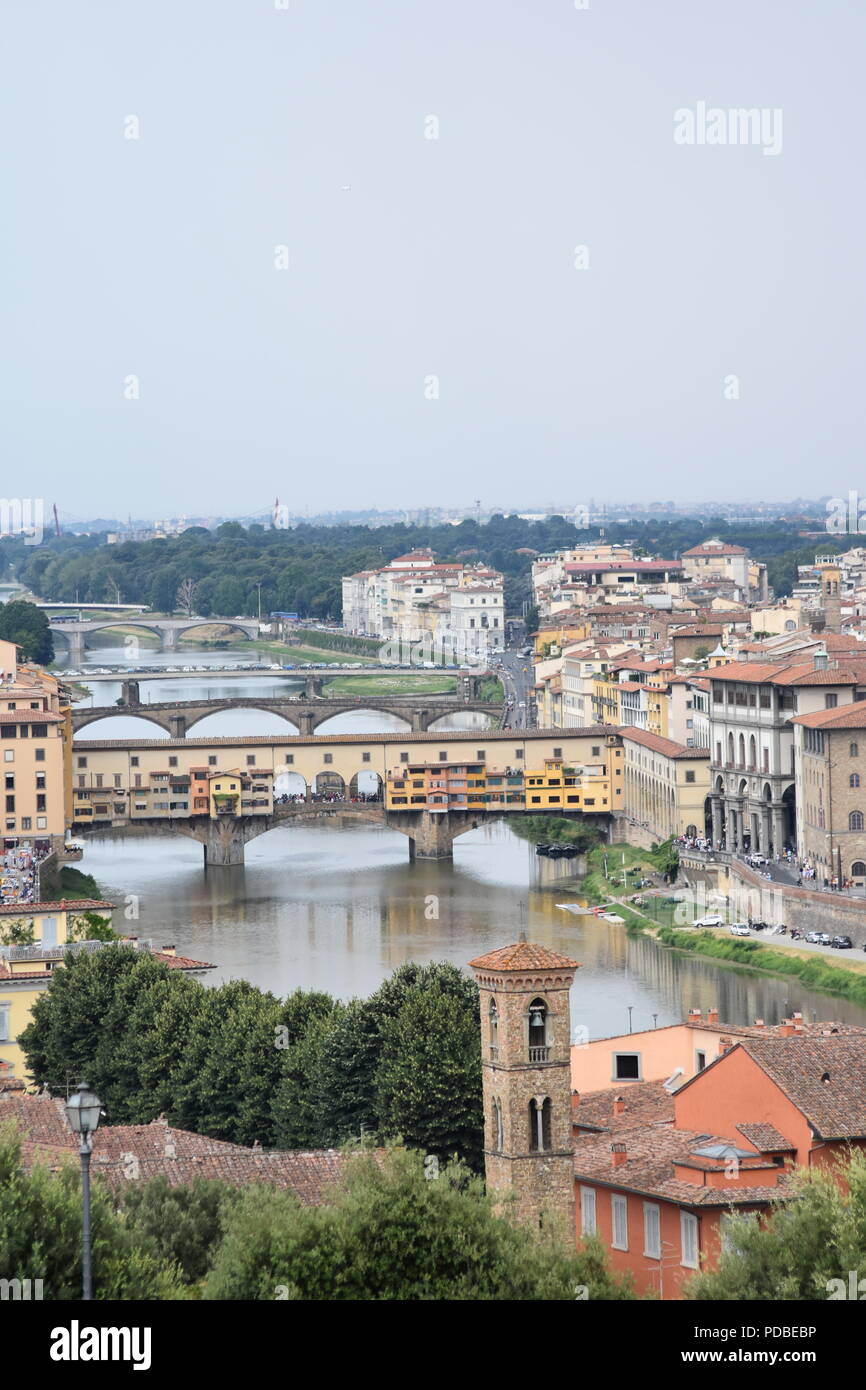 Riprese Aeree Del Ponte Vecchio Tetti Di Firenze E Dal Fiume Arno Su Un Vago Giorno Firenze Toscana Italia Foto Stock Alamy