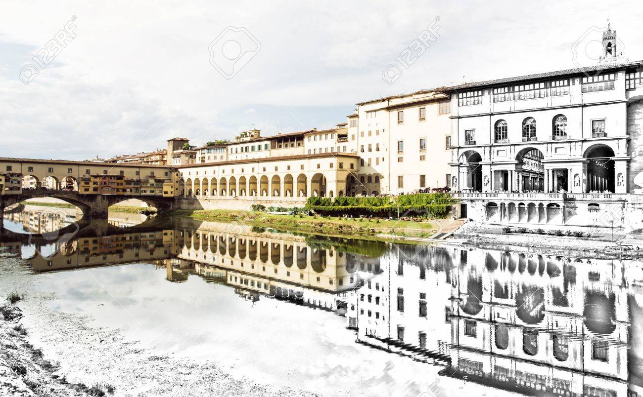 Immagini Stock Dal Disegno Alla Citta Di Firenze Bella Ponte Vecchio Corridoio Vasariano E Galleria Degli Uffizi Si Specchiano Nel Fiume Arno Toscana Italia Passato E Presente Destinazione Del Viaggio Image 53541720