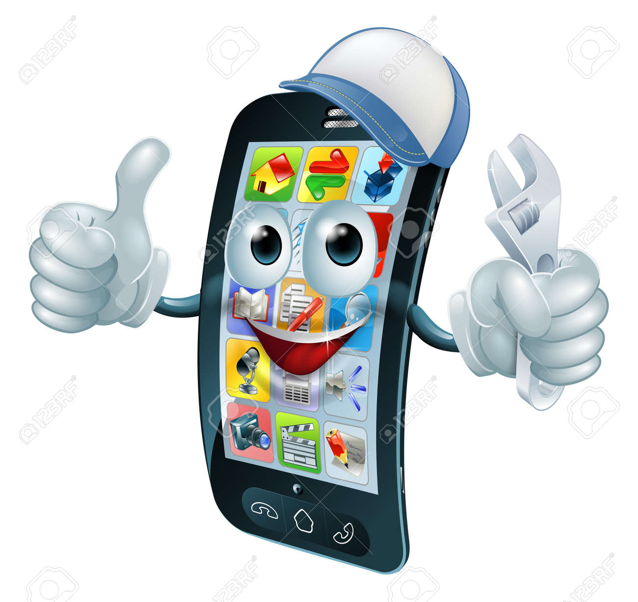 Vettoriale Cellulare Carattere Riparazione Del Telefono Con Chiave O Una Chiave Che Da I Pollici In Su Image 32020484