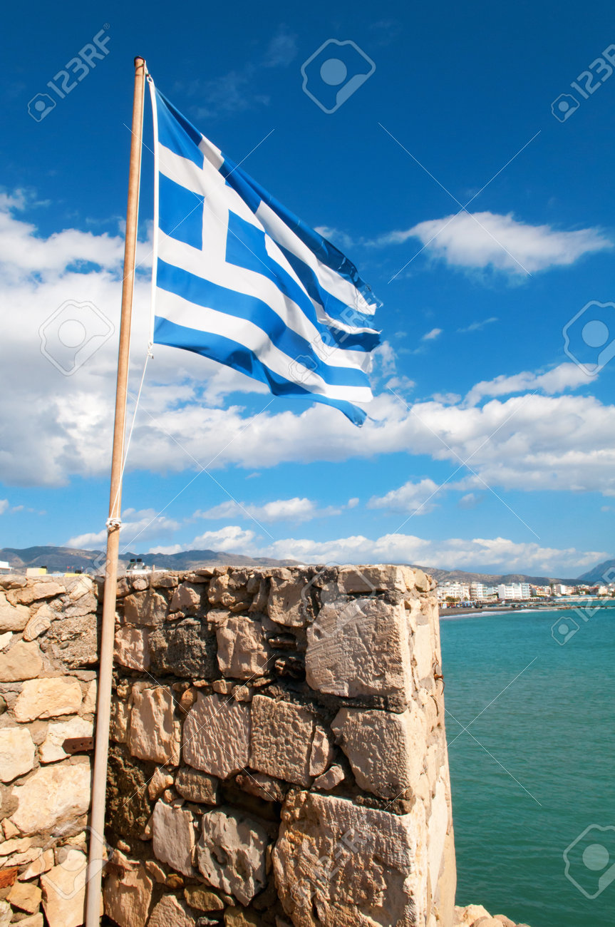 Immagini Stock Bandiera Della Grecia Su Kales Fortezza Alla Citta Di Ierapetra Creta Grecia Image 37082266