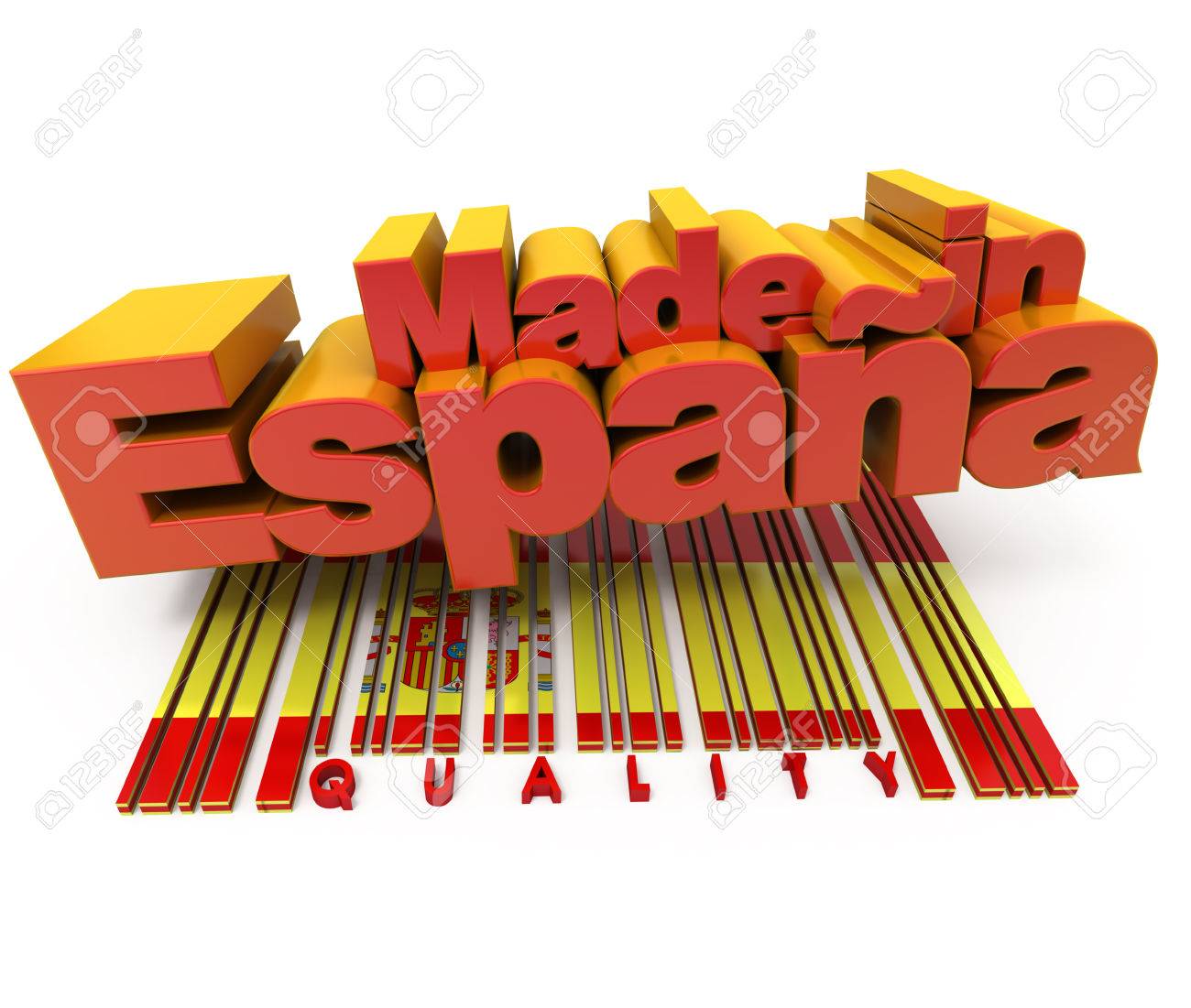 Immagini Stock 3d Fatto In Espaa Con I Colori Della Bandiera Spagnola E Un Codice A Barre Contrassegnata Qualita Image 22443480