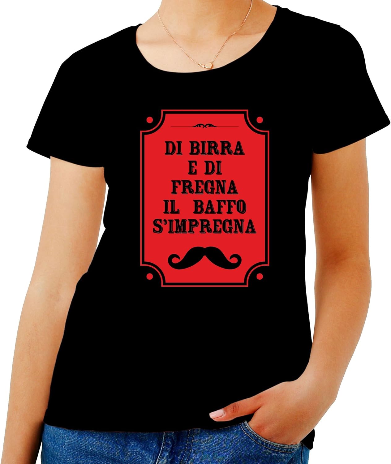 T Shirt Donna Nero T0746 Di Birra E Di Fregna Il Baffo S Impregna Fun Cool Geek Amazon It Abbigliamento