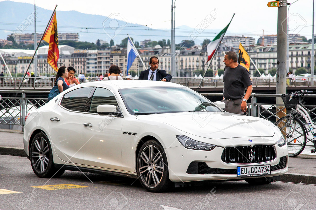 Immagini Stock Ginevra Svizzera 4 Agosto 2014 Automobile Maserati Ghibli Nella Via Della Citta Image 64781513