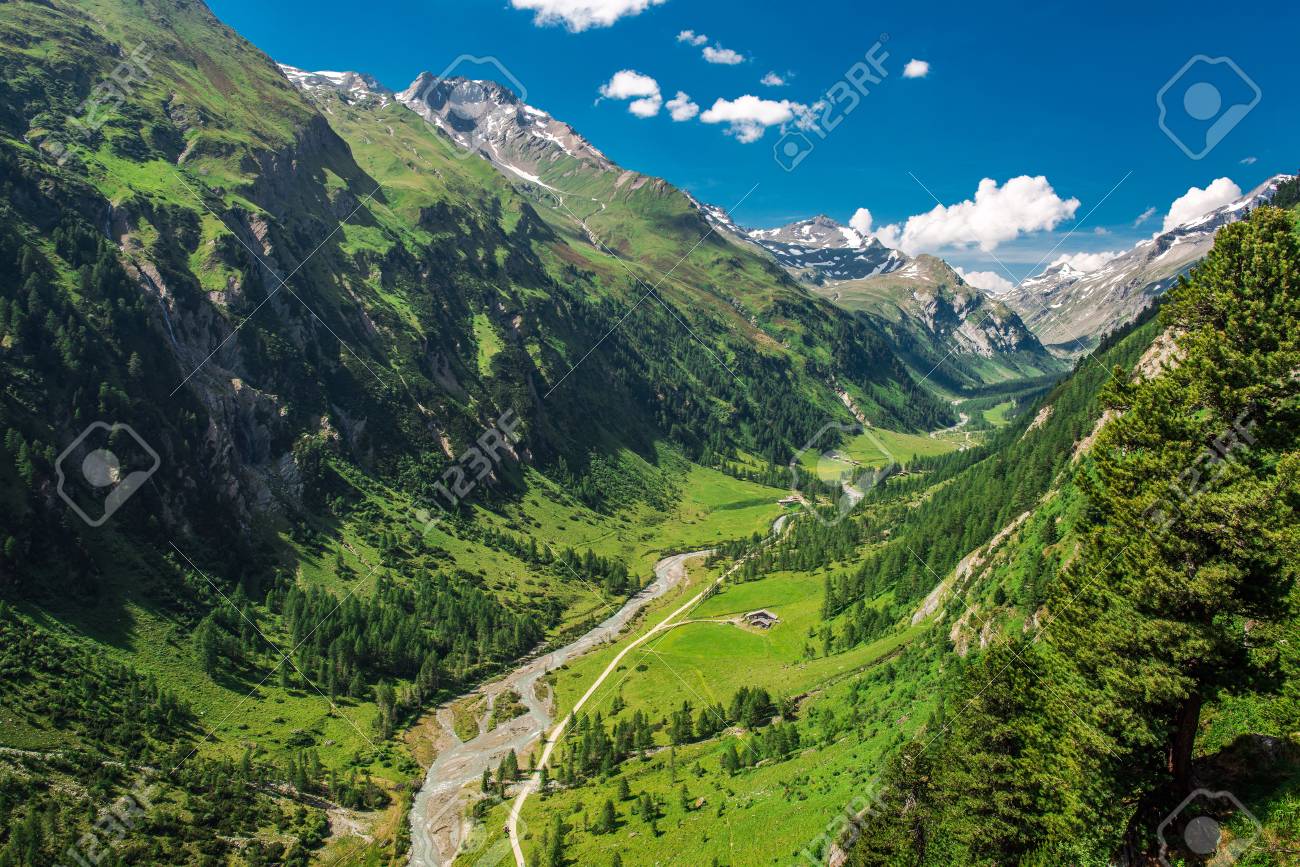 Immagini Stock Paesaggio Scenico Della Valle Della Montagna Di Estate Zona Grossglockner Tirolo Austria Image 81579122