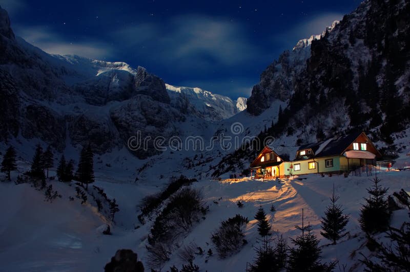 Capanna Della Montagna Di Notte Immagine Stock Immagine Di Portello Scuro 84304187
