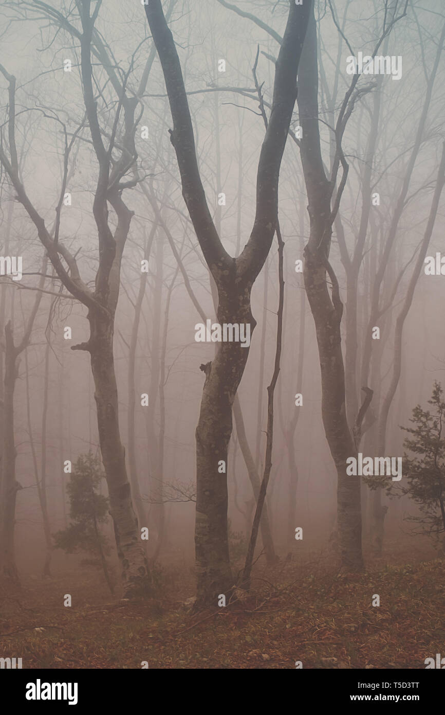Foresta Di Faggio Nel Mezzo Della Nebbia Albania Foto Stock Alamy