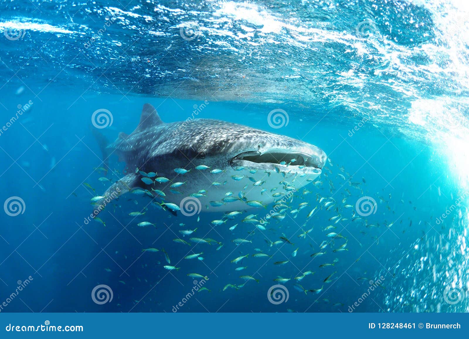Rhincodon Typus Dello Squalo Balena E Piccolo Pesce Giallo Immagine Stock Immagine Di Animale Filippine 128248461