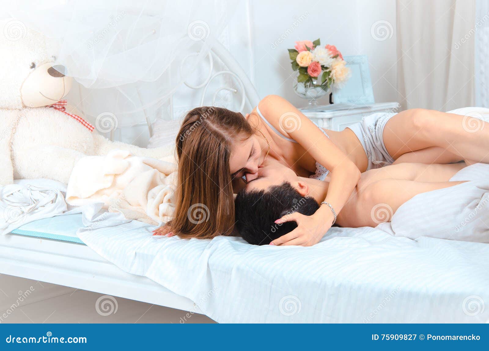 Coppie Degli Amanti A Letto Che Baciano Immagine Stock Immagine Di Base Sposato 75909827