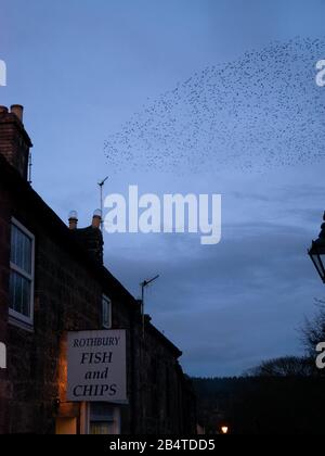 Una Murmurazione Di Animali Che Volano Sulla Strada Alta A Rothbury Northumberland Foto Stock Alamy