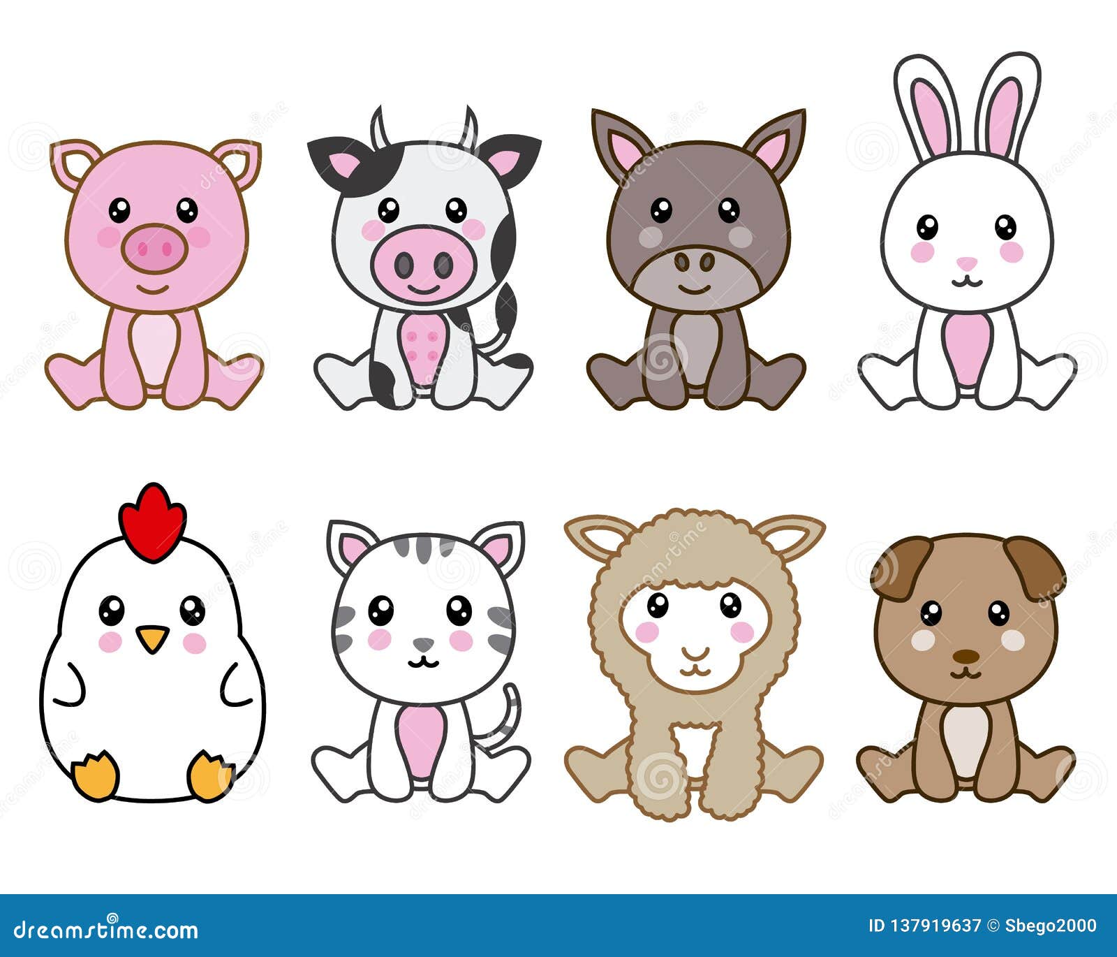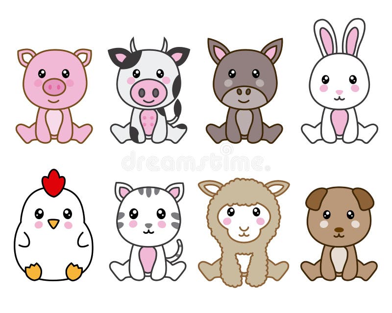 Un Gruppo Di 8 Animali Di Kawaii Illustrazione Vettoriale Illustrazione Di Animali Cute 137919570