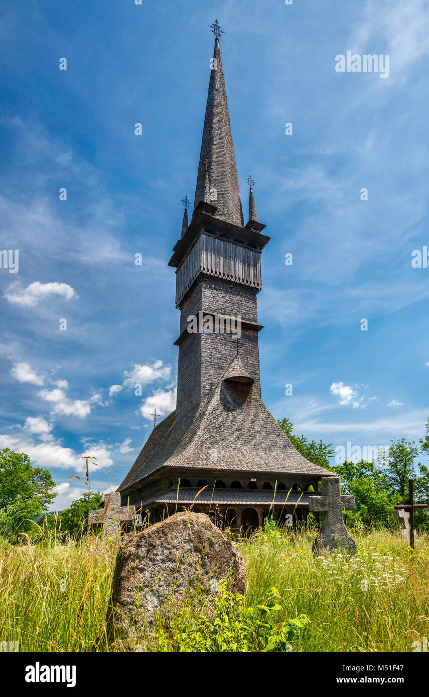 La Chiesa Dei Santi Arcangeli Michele E Gabriele In Legno Del Xviii Secolo Chiesa Greco Cattolica Lapidi In Primo Piano Villaggio Di Surdesti Maramures Romania Foto Stock Alamy
