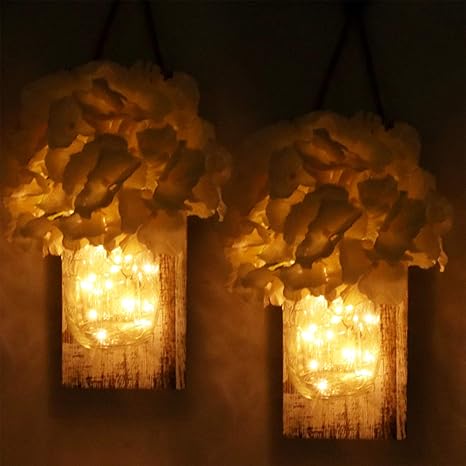 2 Pezzi Di Applique Da Parete Rustico Yofuly Arredamento Rustico In Legno D Epoca Ganci In Ferro Battuto Ortensie Di Seta E Luci A Strisce Led Design Per La Decorazione Domestica Amazon It Illuminazione