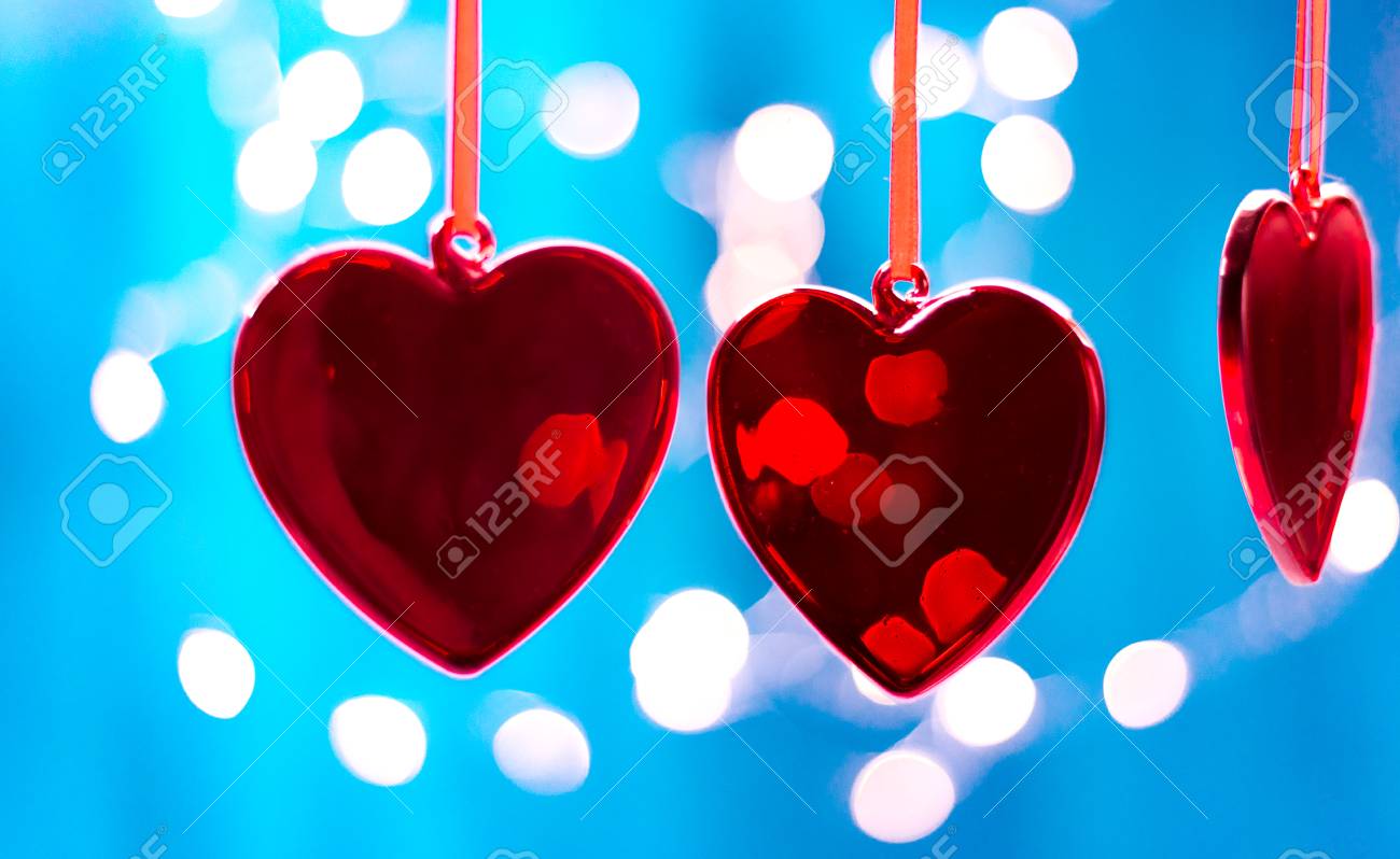 Immagini Stock Cartolina D Auguri Di Giorno Di San Valentino Priorita Bassa Di Giorno Di San Valentino Cuore Di Vetro Rosso Su Uno Sfondo Di Luci Image 90152927