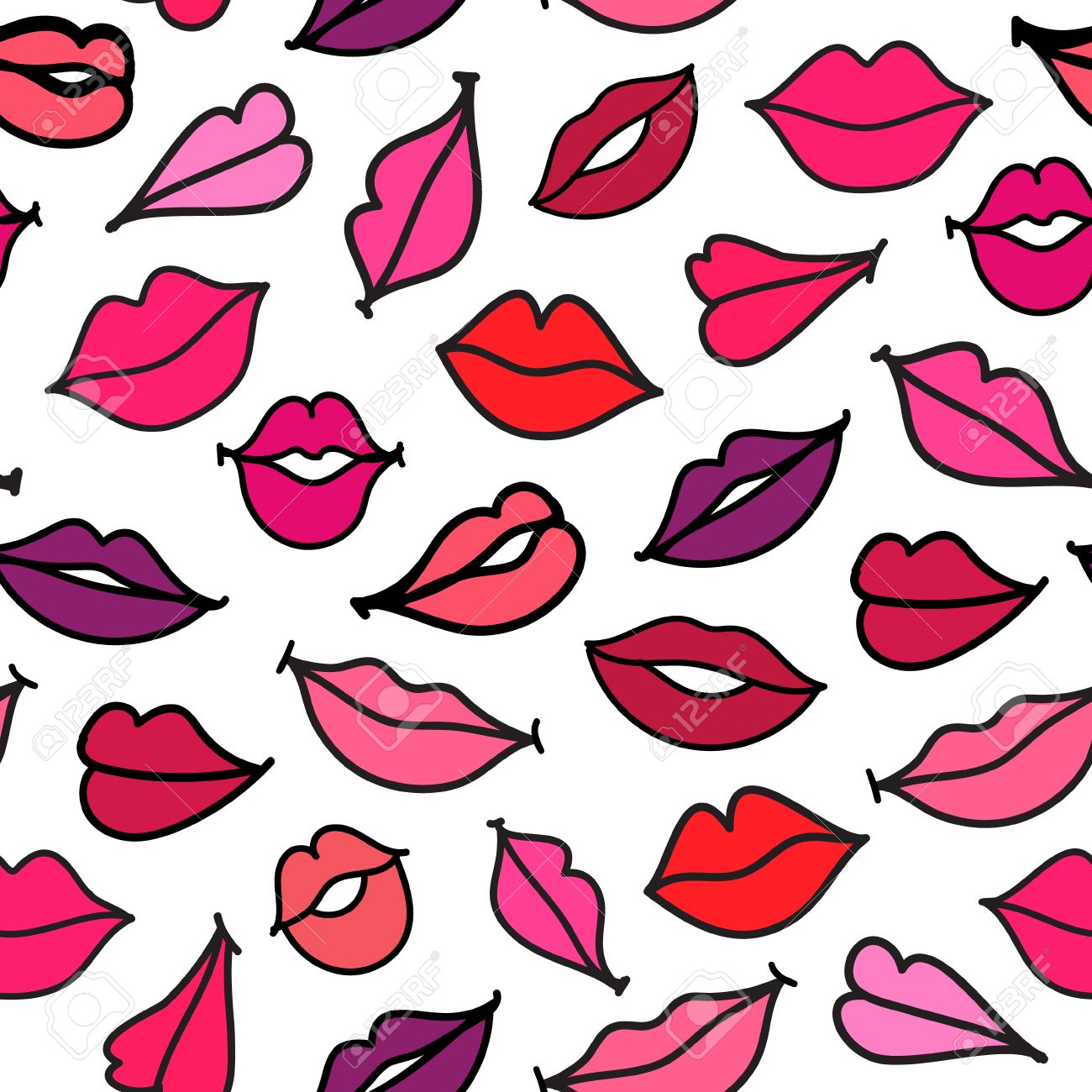 Vettoriale Baci Senza Soluzione Di Continuita Vettore Cartone Animato Disegnato A Mano Labbra Modello Fondo Image 48739320