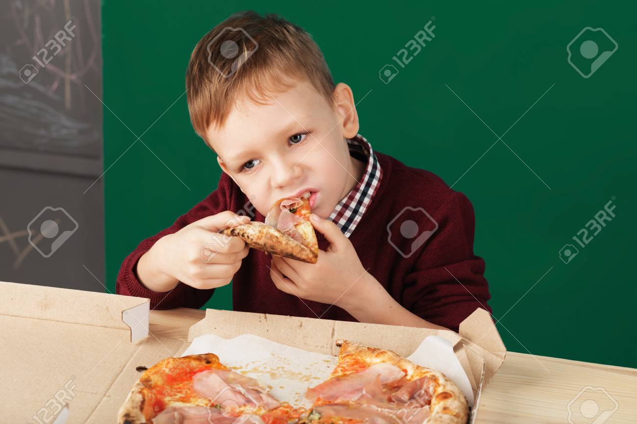 Immagini Stock I Bambini Mangiano Pizza Italiana Nel Caffe Il Ragazzo Della Scuola Sta Mangiando La Pizza Per Pranzo Concetto Di Pasto Malsano Bambino Bambini Affamati Ricetta Della Pizza Bambino Che