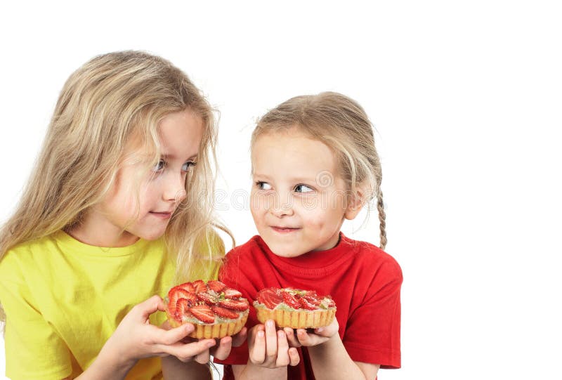 Bambini Che Mangiano I Dolci Della Frutta Fotografia Stock Immagine Di Crema Decorativo 117794308