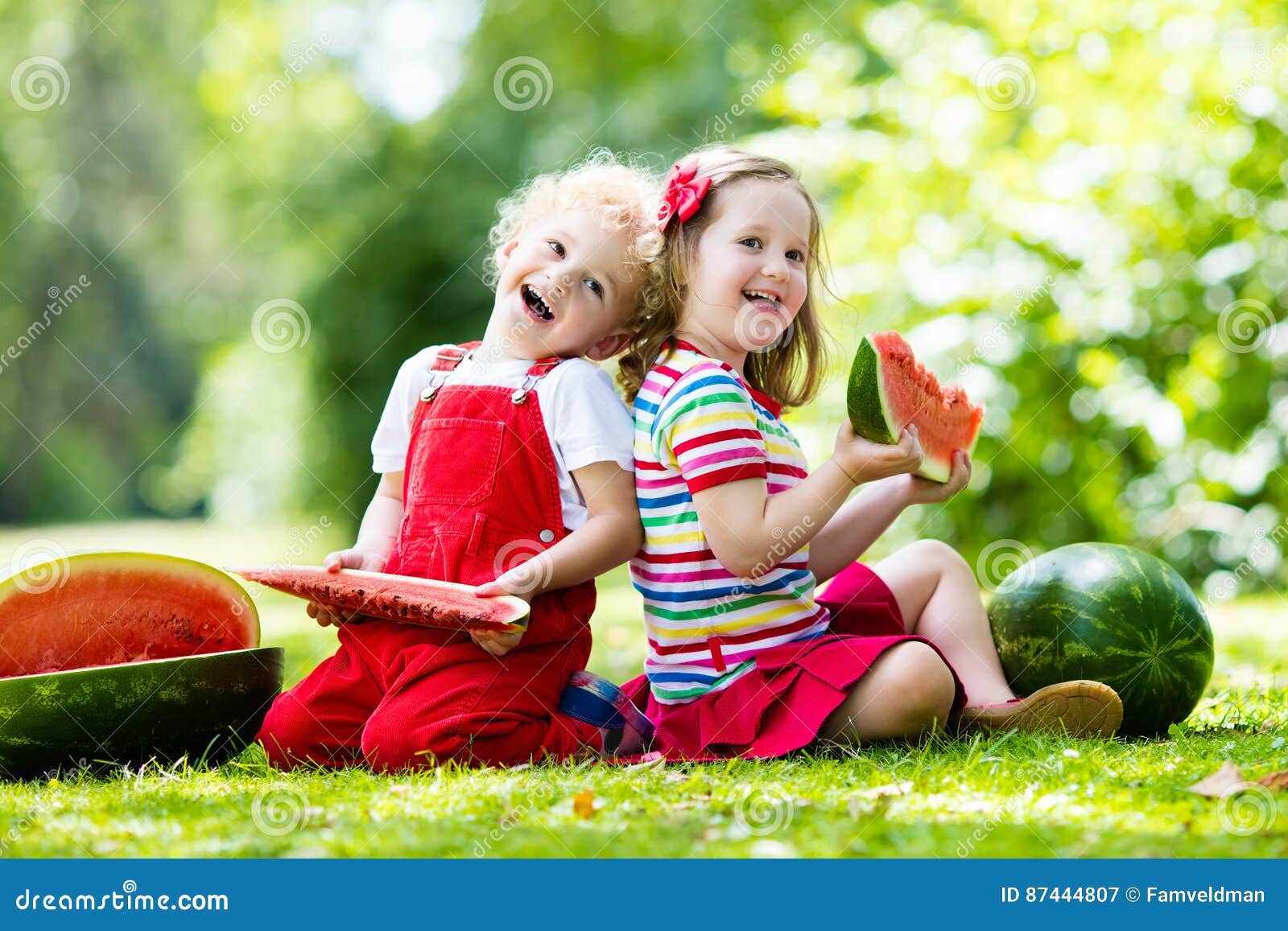 Bambini Che Mangiano Anguria Nel Giardino Immagine Stock Immagine Di Consumo Morso 87444807