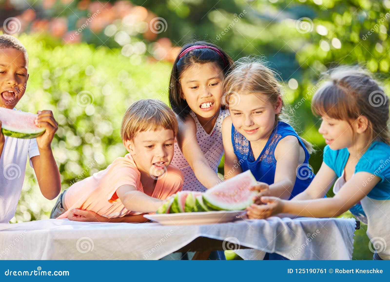 Bambini Che Mangiano Melone Di Estate Immagine Stock Immagine Di People Internazionale 125190761