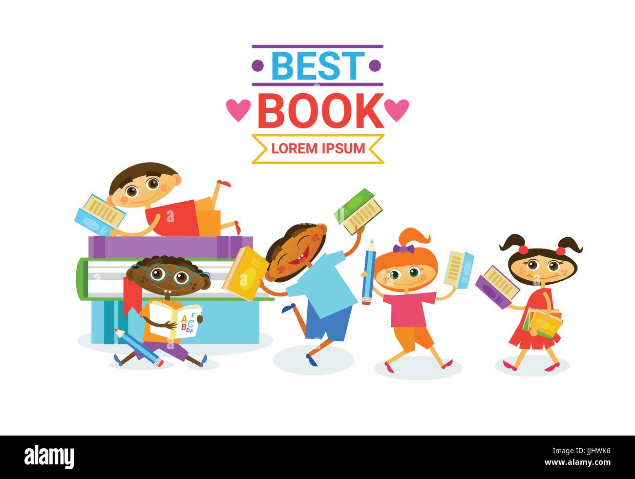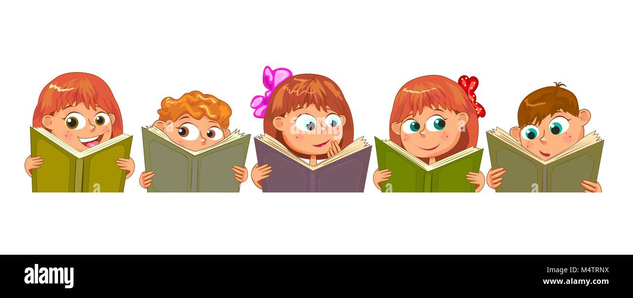 Un Gruppo Di Bambini Con La Lettura Di Libri Di Carino Bambini Sorridenti Immagine E Vettoriale Alamy