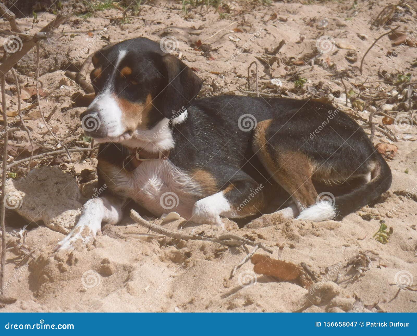 Beagle Cross Dog Lying On Sand Stock Image Image Of Nice Beach 156658047