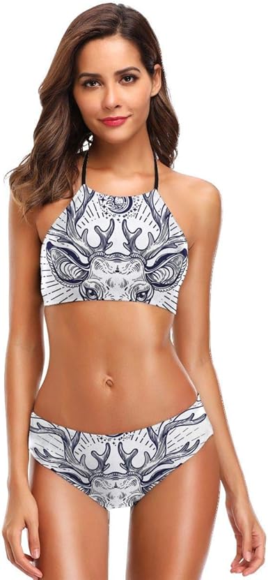 Costumi Da Bagno In Due Pezzi Del Bikini Delle Donne Bella Illustrazione Delle Corna Di Schizzo Della Testa Della Renna Dei Pantaloni A Vita Bassa Amazon It Abbigliamento