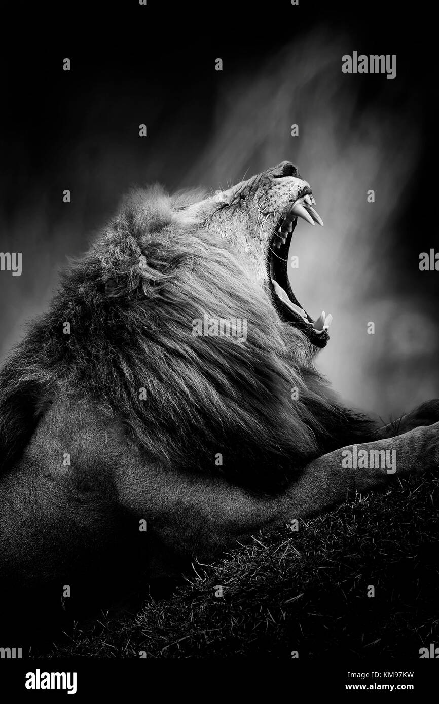 Drammatica Immagine In Bianco E Nero Di Un Leone Su Sfondo Nero Foto Stock Alamy