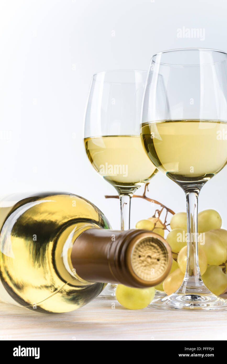 Bottiglia E Bicchieri Di Vino Bianco Uve Plus Foto Stock Alamy