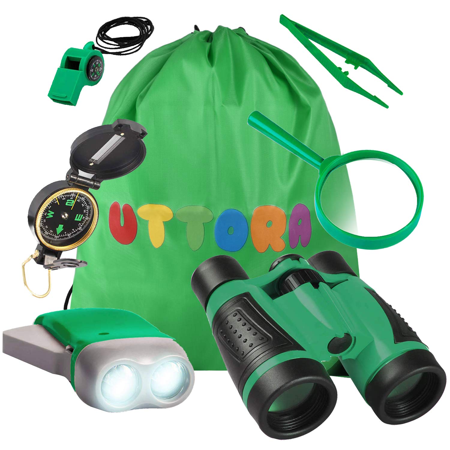 Uttora Set Di Binocolo Per Bambini 7 In 1 Giocattoli Per Avventurose Esplorazioni Della Natura Binocolo Torcia A Led Giochi Legno