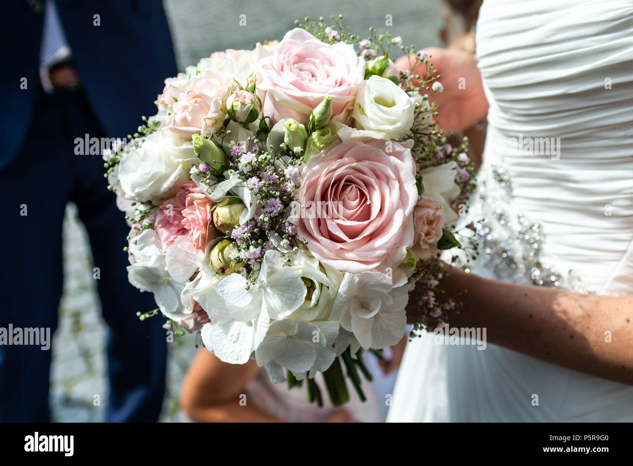 Wedding Bouquet Di Fiori Detenute Da Una Sposa Closeup Fiore Rosa Foto Stock Alamy