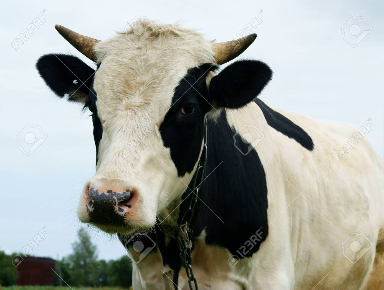 Immagini Stock Corno Di Bue Con Il Pascolo Di Curiosita Che Si Guarda Image 3884386