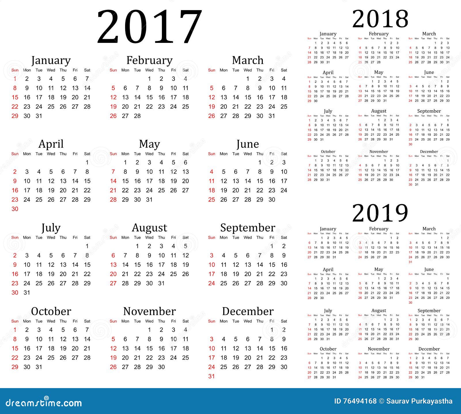 Vettoriale Modello Di Calendario Semplice In Coreano Per Gli Anni 2017 2018 2019 La Settimana Inizia Da Lunedi Image 91717781