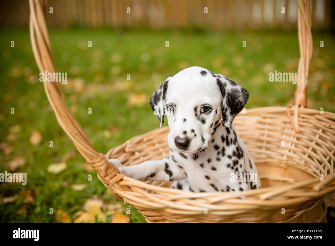 Cane Dalmata Di Razza Su Una Passeggiata Bellissima Ritratto Cucciolo Dalmata In Un Prato Nella Stagione Autunnale Tempo Di Autunno Adorabile Cucciolo Dalmata In Un Cesto Spazio Di Copia Foto Stock Alamy