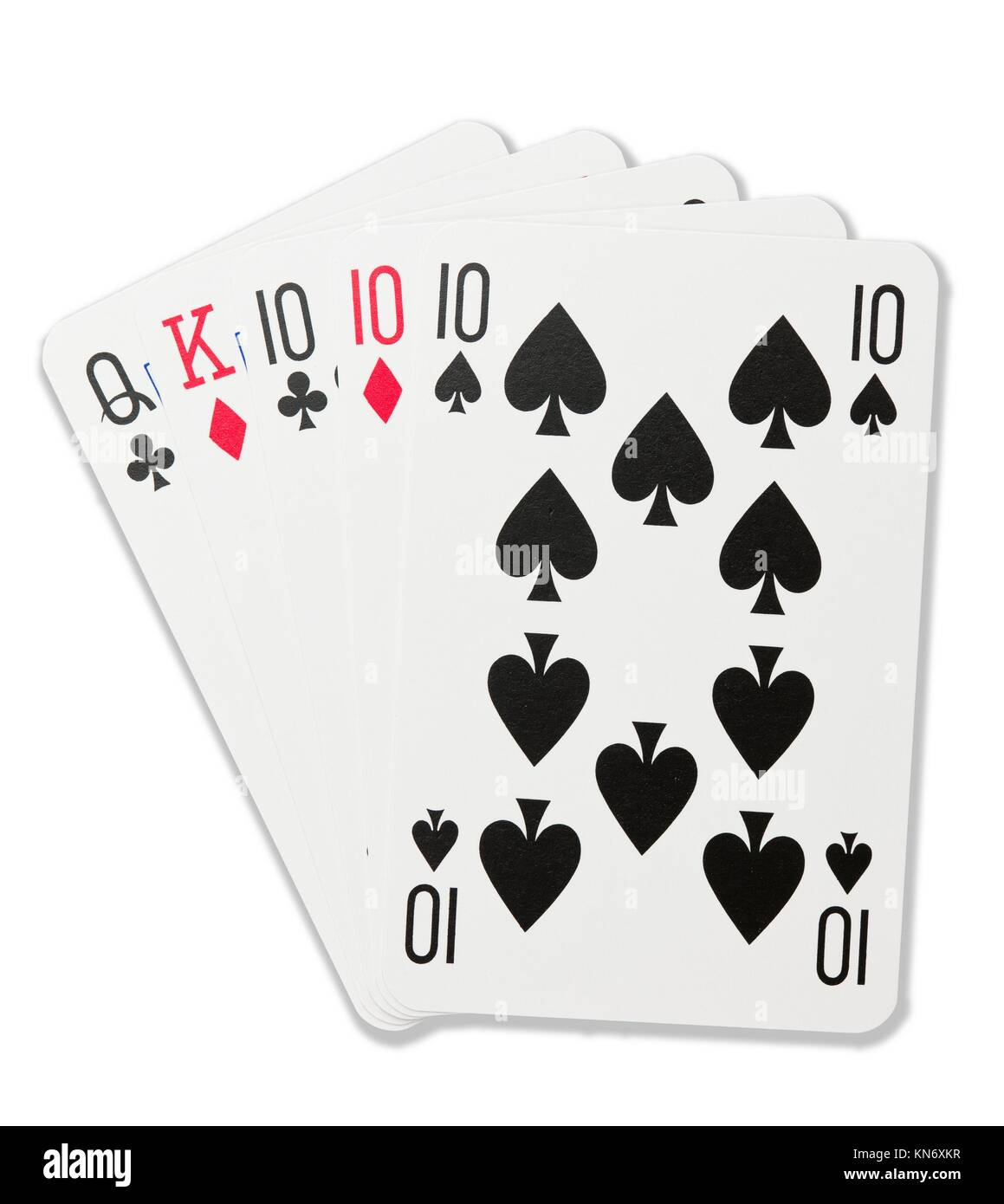Carte Da Gioco Tre Di Un Genere Nel Poker Sfondo Bianco Foto Stock Alamy