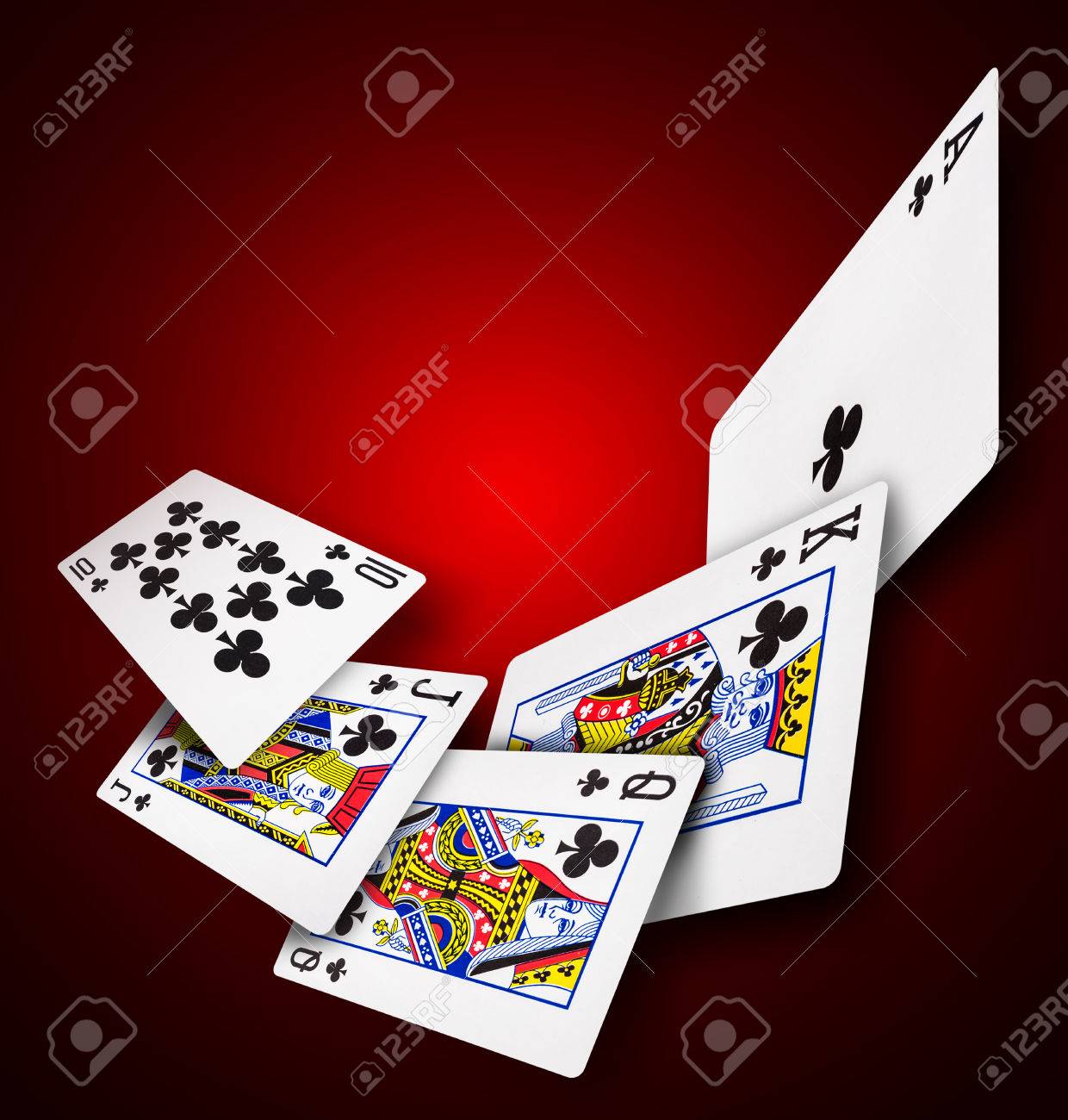 Vettoriale Una Scala Reale Di Picche Su Sfondo Rosso Mani Vincenti Di Carte Da Poker Carte Da Gioco Del Casino Image 87266589